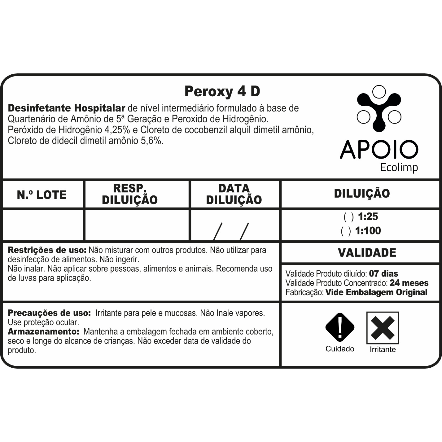 / Etiqueta identificação peroxy 4d