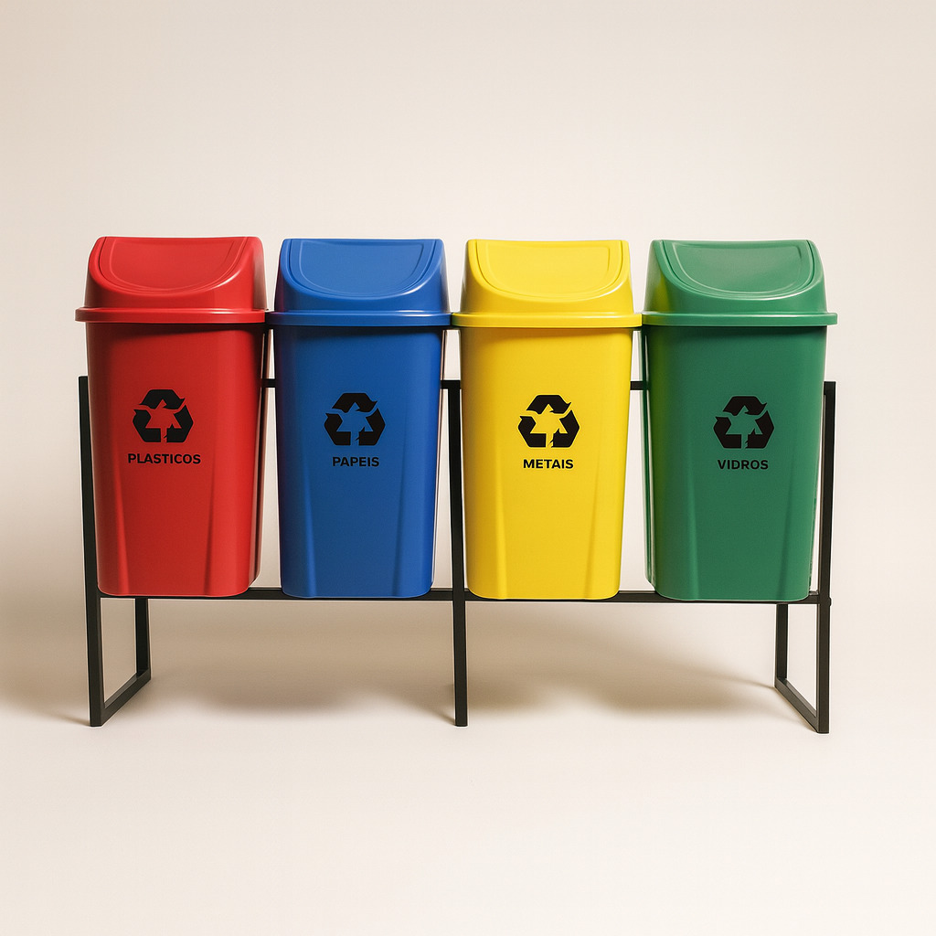 / Lixeira coleta seletiva tampa basc 4 cores 60l c/ suporte lp