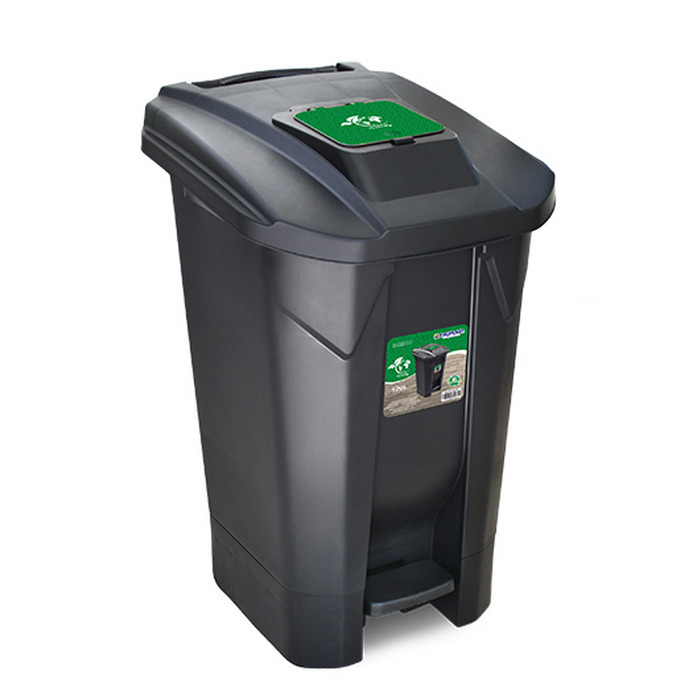 Lixeira com tampa click pedal e roda preta 120l arqplast
