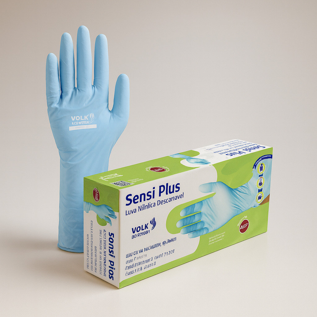 Luva nitrilica sem pó longa grossa plus tam m 50 un volk
