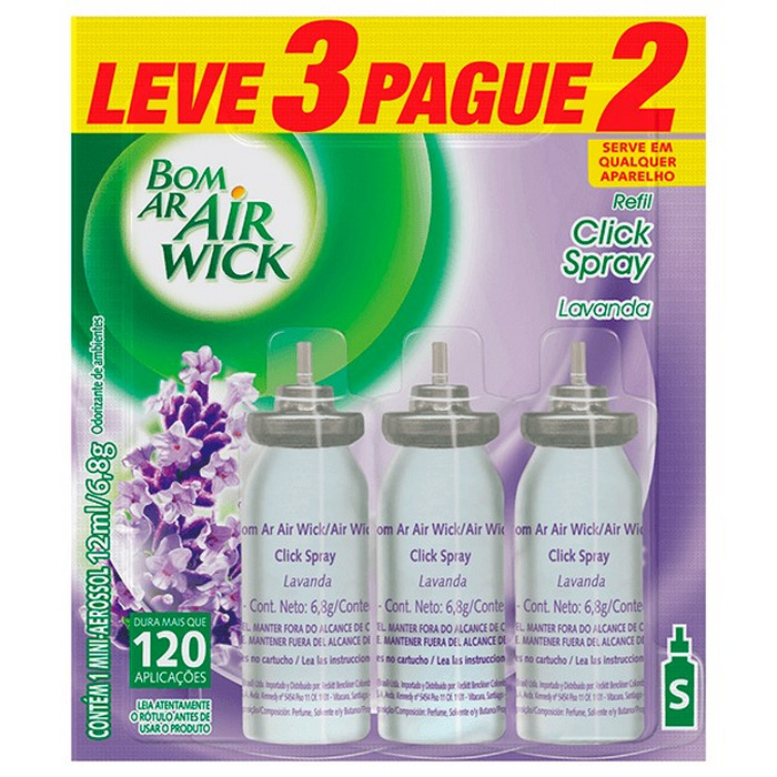 / Odorizador click spray lavanda refil 3x12ml bom ar
